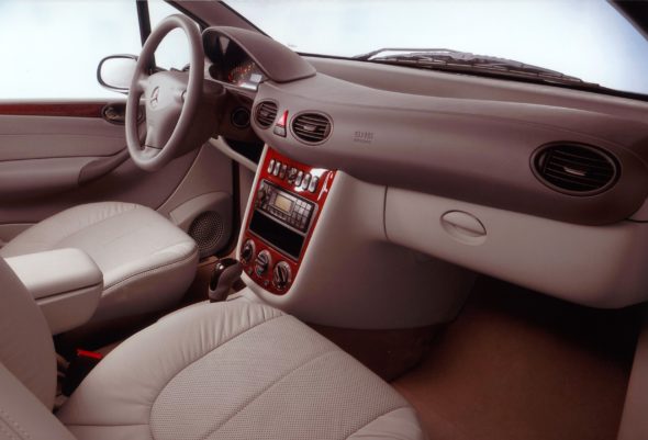 The other advantage of such a layout was that it allowed for a spacious interior in what was still a compact car. In fact, the A-Class offered as much room for passengers as cars from the class above, and that was before Mercedes also introduced a long-wheelbase version. The light controls and raised driving position (Mercedes reckoned it was 20cm higher than you’d sit in a conventional car) also made it very easy to drive.