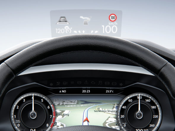 Ideally here we are talking about the fully integrated systems that project a car’s speed and sat-nav commands directly on to the windscreen, rather than the cheaper alternative where a flimsy looking plastic panel flips up from the top of the dash. The purpose of such a system is to reduce how much time the driver spends looking away from the road – and it really does work. With a head-up display you can have a much clearer idea of how quickly you are travelling at any given time than would ever be possible with traditional dials.